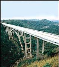 Marca el límite territorial por la conocida Vía Blanca de las provincias de La Habana y Matanzas, por consiguiente ambos territorios le disputan el gentilicio a esta verdadera joya de la arquitectura cubana con extensión de 114 metros y alturas que rondan los 110 metros. La obra se terminó de construir en 1960 y el arco del puente se materializó con acero laminado, armado en dos partes, girando cada una hasta llegar a la posición permanente. Las vigas se ubicaron mediante armaduras de lanzamiento y pesan nada menos que 47 toneladas cada una. Puede considerarse que es la construcción de su tipo más compleja y atrevida que existe en Cuba. El proyectista principal fue el ingeniero Luis Saenz Duplace.
